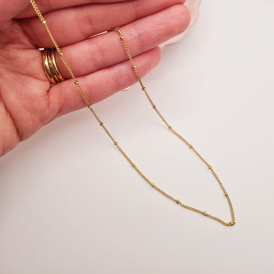 18K Gold Plated Beaded Necklace - Tarnish Free Waterproof Steel