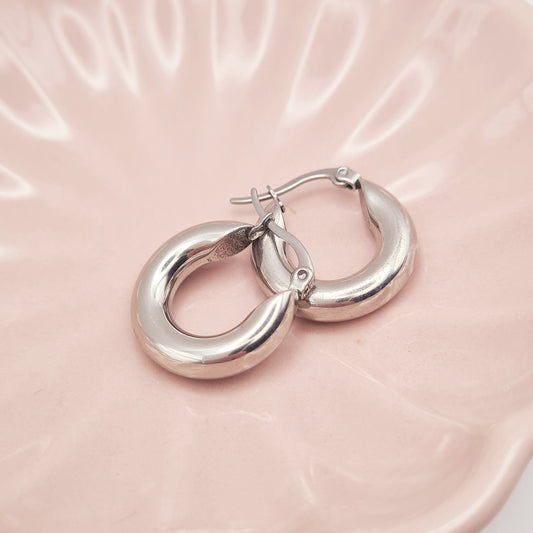Small Chubby Hoop Earrings - 18K Gold Plated Stainless Steel