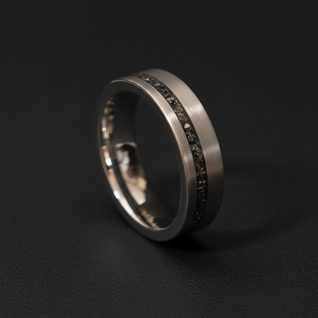 Introducing "The Nova," part of our meteorite collection that embodies the brilliance of a stellar explosion and the rarity of true love. Crafted with genuine meteorite material, this extraordinary ring showcases the mesmerizing Widmanstätten patterns—unique crystalline structures that form over millions of years in the cold expanse of space. "The Nova" is not just a piece of jewellery; it's a fragment of the cosmos, symbolizing a love that's as timeless and awe-inspiring as the universe itself. Wear a story of cosmic wonder and begin your new journey together with a ring that's truly out of this world.