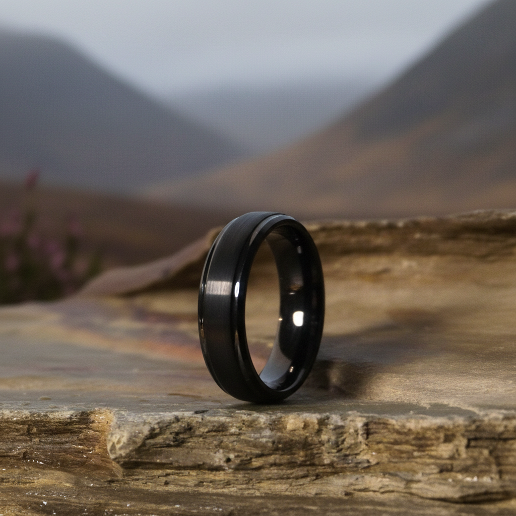 The Foundation is a solid black 6mm brushed tungsten ring designed for those who want durability without bulk. This wedding band combines the strength of tungsten carbide with a slim profile, making it ideal for everyday wear.