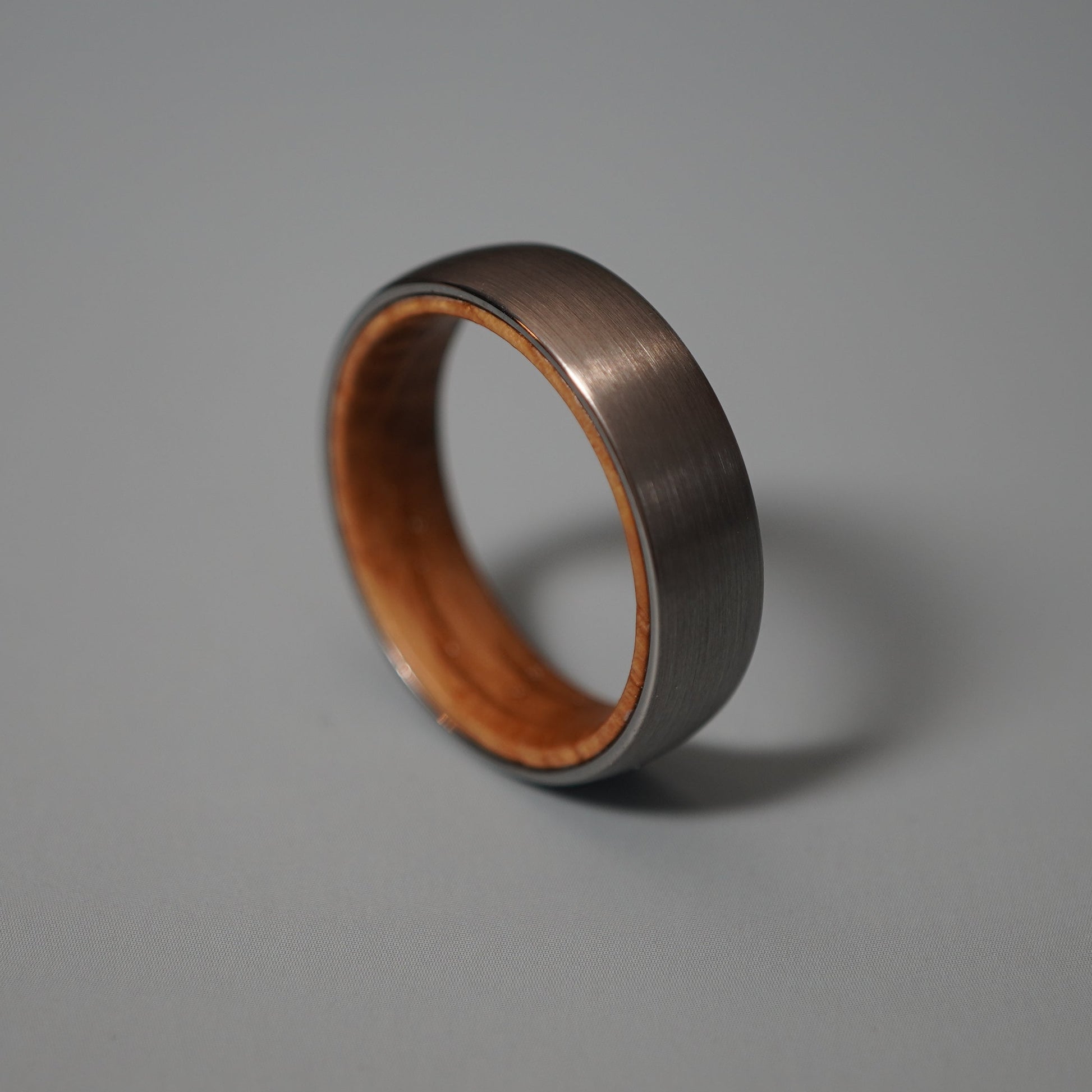 The Glen our 6mm domed brushed tungsten oak barrel inlay. This ring is is perfect for those looking for tough but softer. It’s rounded edges make for a smooth, soft finish. While the oak barrel ensures that every ring is unique, with no other ring quite the same!