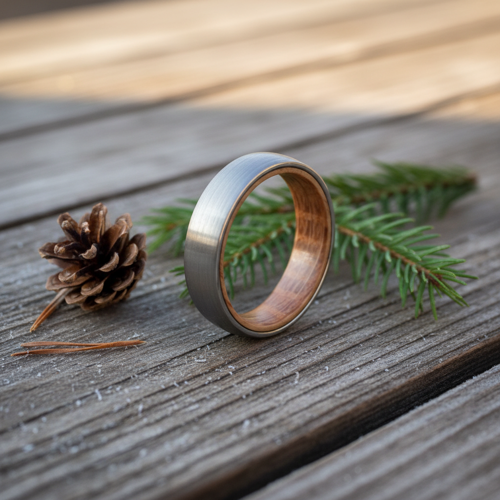At Forge & Lumber our wedding rings feature natural wood, making each piece unique. Due to the inherent variability of wood, the colour, grain, and texture of your ring may differ slightly from the photos on our website. These natural variations enhance the authenticity and individuality of each ring. If you have specific preferences, feel free to contact us before placing your order. Thank you for choosing us for your special day!