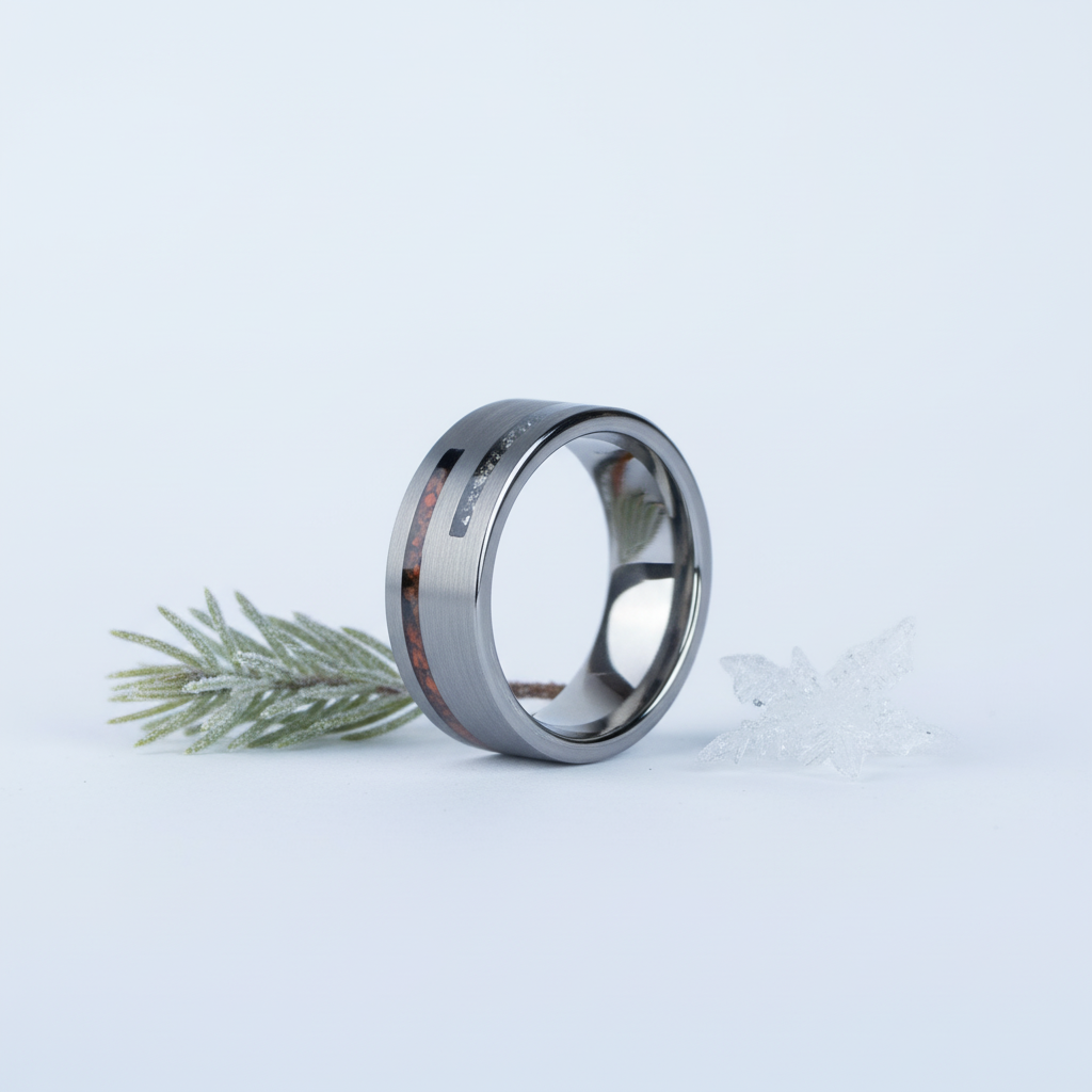 Two worlds collide in the most beautiful way. The Impact celebrates the meeting of Earth's prehistoric past through genuine dinosaur bone with the cosmic force of meteorite, creating a ring that represents how two lives can come together to create something extraordinary.