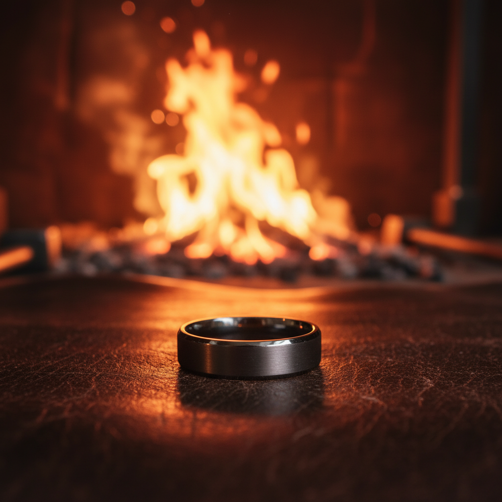 Black zirconium creates a distinctive matte black finish that resists scratching and maintains its appearance over time. This alternative metal offers superior durability compared to traditional wedding band materials. The black oxide layer forms through a heat treatment process, creating a permanent finish that won't fade, peel, or wear off with daily use.