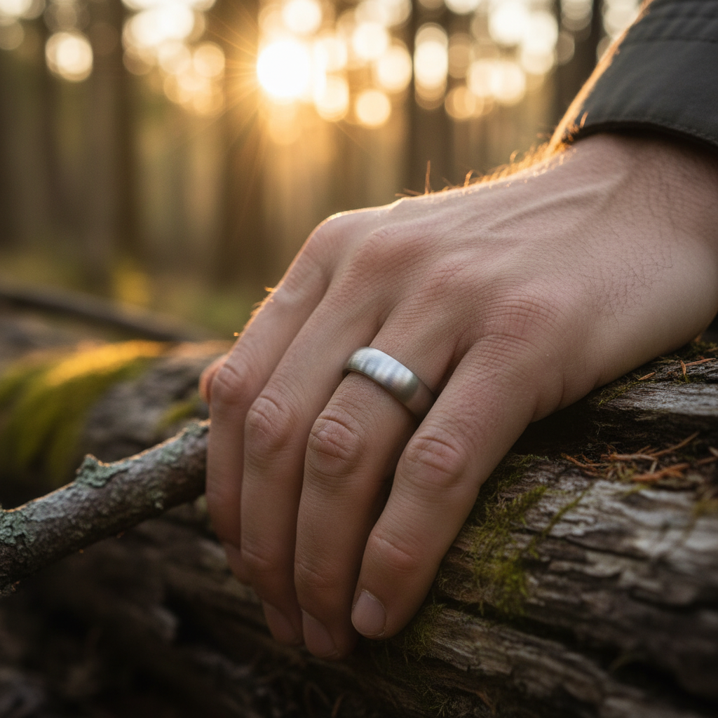The brushed satin finish provides natural scratch camouflage - minor surface marks blend into the texture rather than standing out. Unlike precious metals that require regular polishing, titanium maintains its appearance with minimal maintenance.