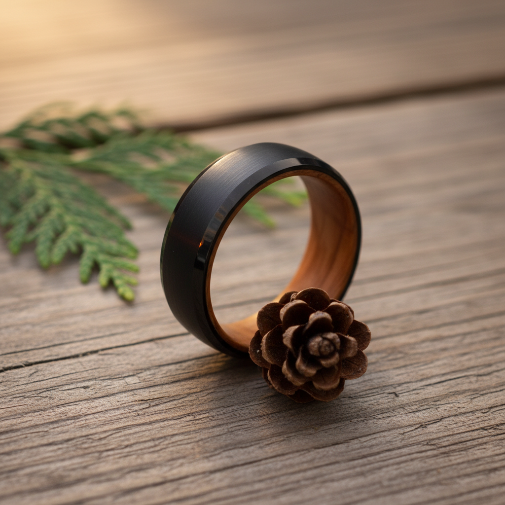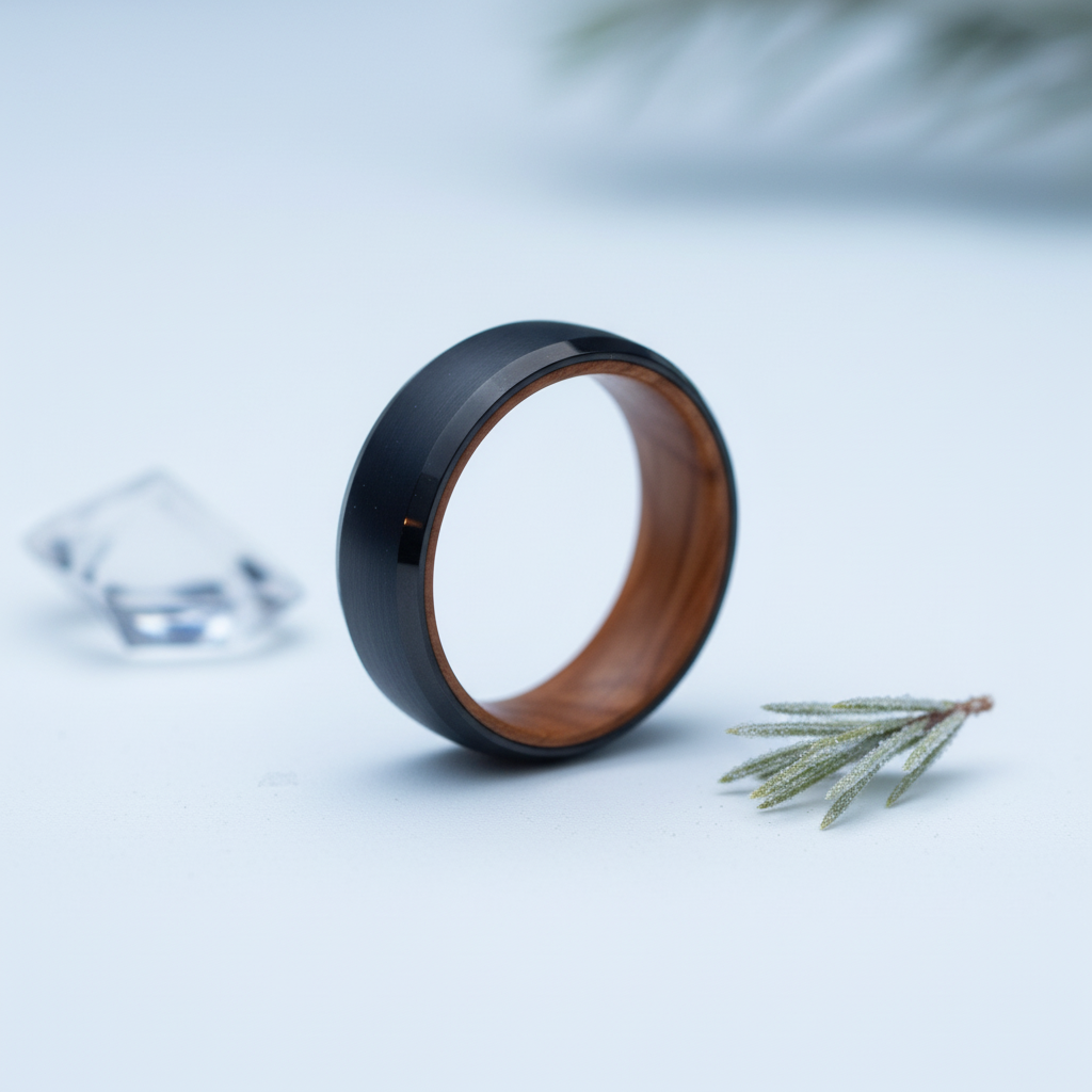 At Forge & Lumber our wedding rings feature natural wood, making each piece unique. Due to the inherent variability of wood, the colour, grain, and texture of your ring may differ slightly from the photos on our website. These natural variations enhance the authenticity and individuality of each ring. If you have specific preferences, feel free to contact us before placing your order. Thank you for choosing us for your special day!