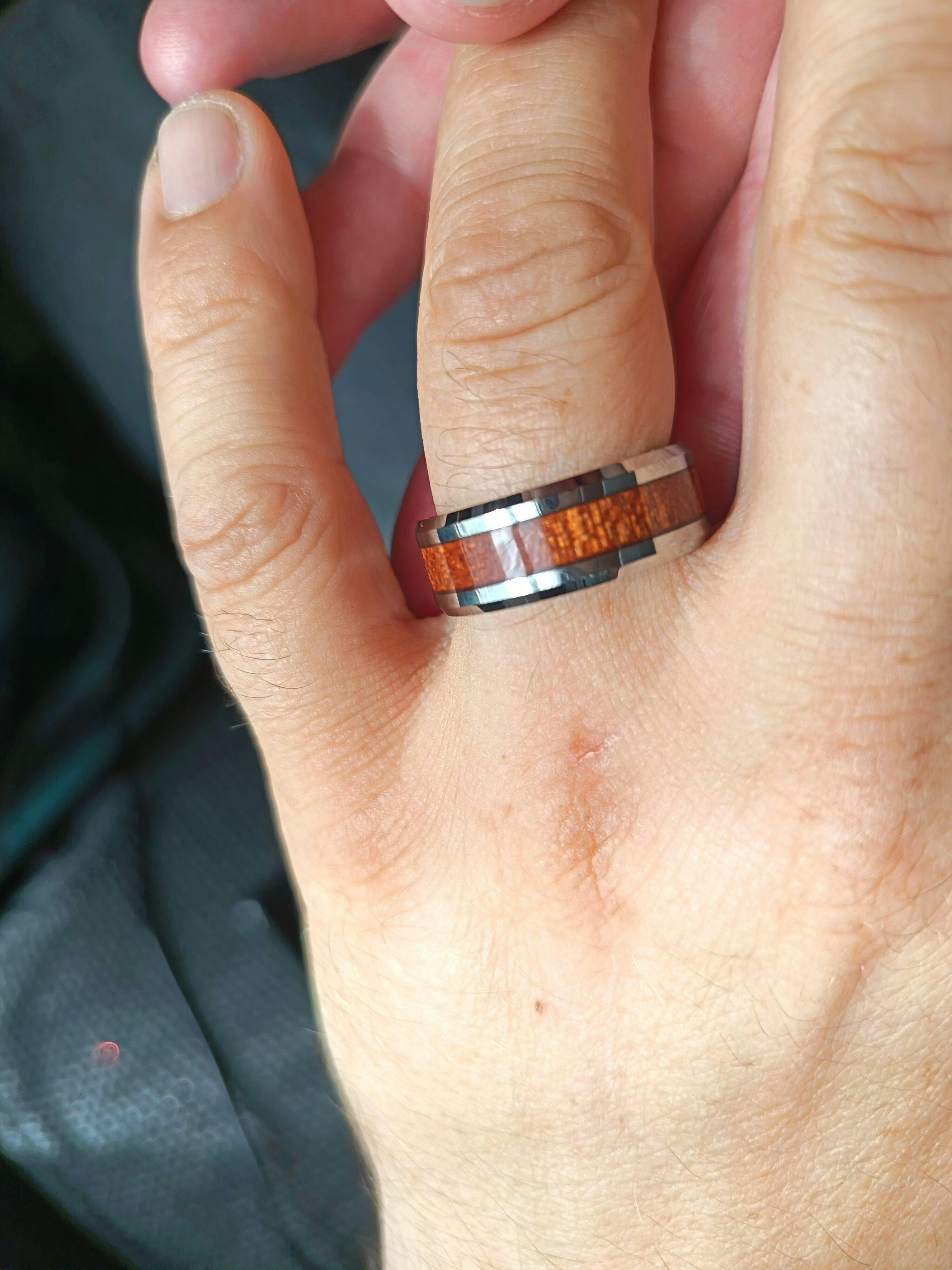 At Forge & Lumber our wedding rings feature natural wood, making each piece unique. Due to the inherent variability of wood, the colour, grain, and texture of your ring may differ slightly from the photos on our website. These natural variations enhance the authenticity and individuality of each ring. If you have specific preferences, feel free to contact us before placing your order. Thank you for choosing us for your special day!
