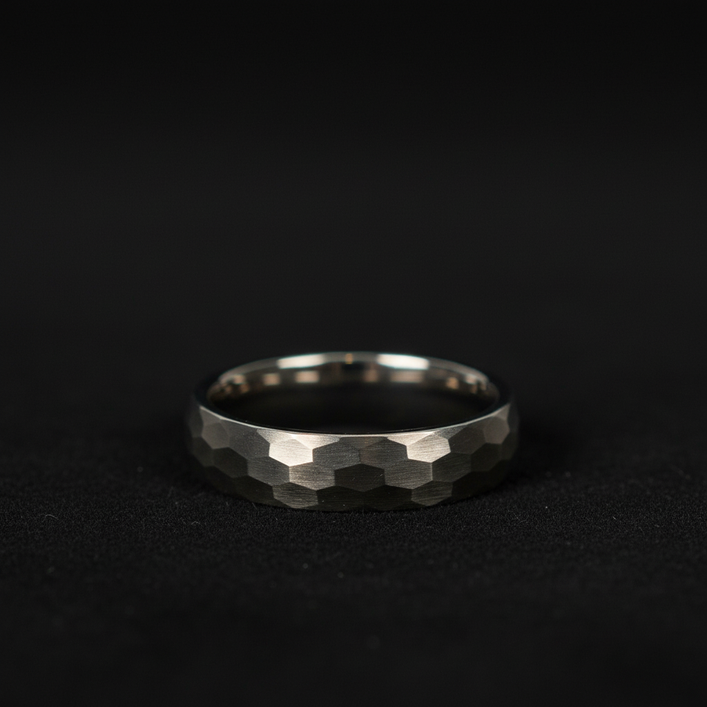 Hammered Titanium Ring with Distinctive Faceted Finish