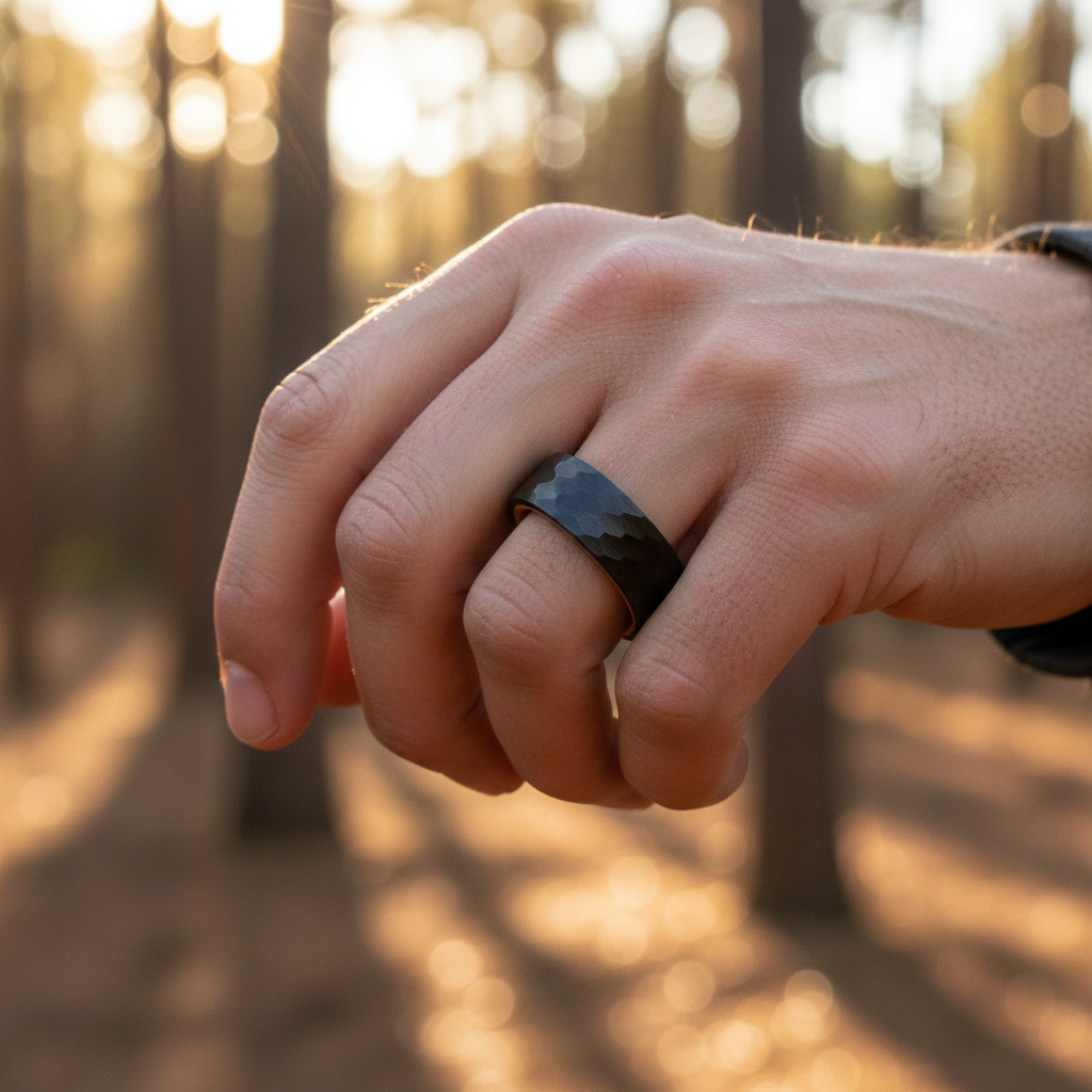 I ordered The Blacksmith ring for my husband as a surprise for his birthday. Little did I know that is original wedding ring (which was temporary until he found a style he liked) was too big in size. The ring was lovely but it wasn't quite thick enough for his liking and the size was too big. I would highly recommend getting the ring sizer before ordering. I emailed to let Deb and Dan know of the issue and the other ring he chose; it was quickly resolved without further problems. My husband was very impressed with the ring and how it was presented in the wooden box. I would definitely recommend and use Forge and Lumber again.
