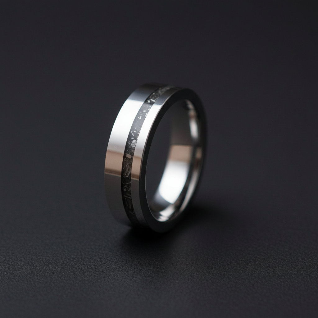 Each ring features a genuine meteorite fragment with natural Widmanstätten patterns—crystalline structures that formed over millions of years in the vacuum of space. No two rings are identical, making your piece truly one-of-a-kind. The meteorite inlay is carefully set and sealed within the tungsten band for permanent protection.