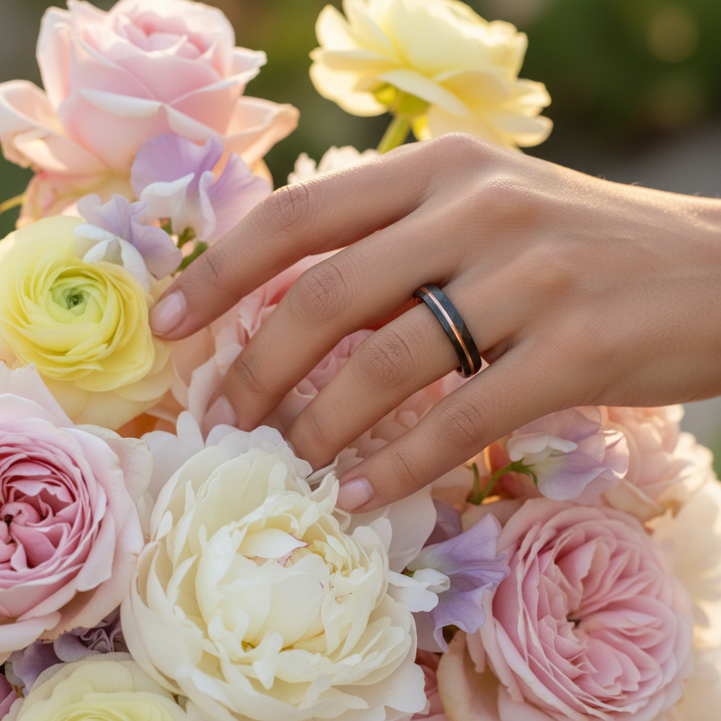 The Tana meaning Gaelic for thin. Here is our beautiful 4mm tungsten rose gold plated ring. Small in stature but nonetheless special. If you are looking for delicate but special, this is the one for you!