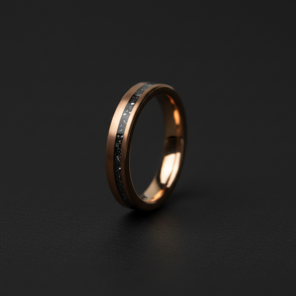 • 4mm width meteorite inlay tungsten ring