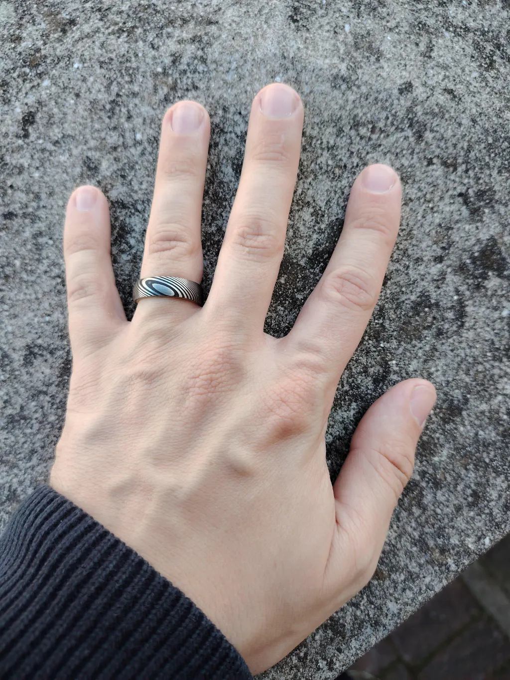 The ring I was viewing was the Damascus - 6mm, and with an excellent response, I had the correct ring size and a ring that I love, all well before my wedding day.