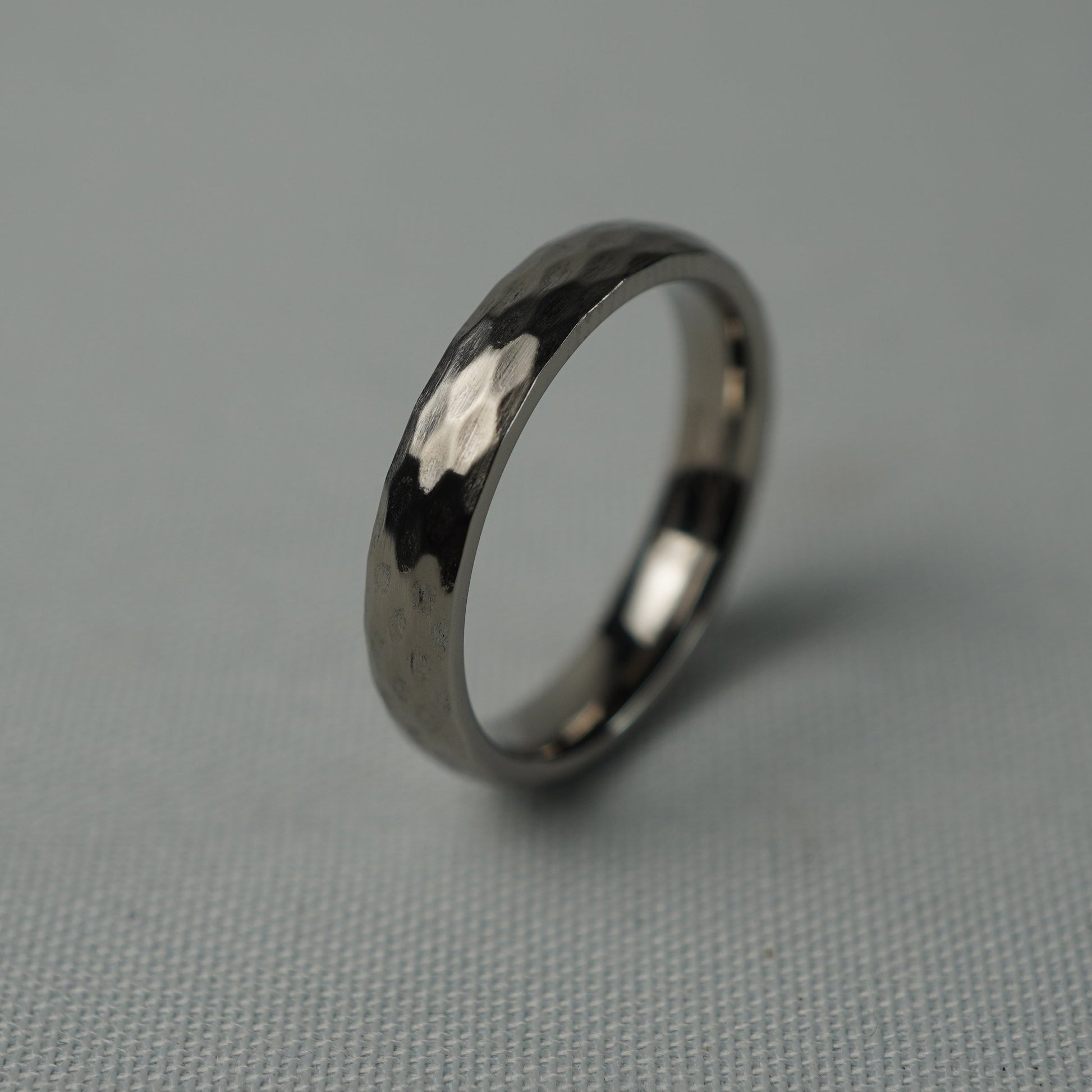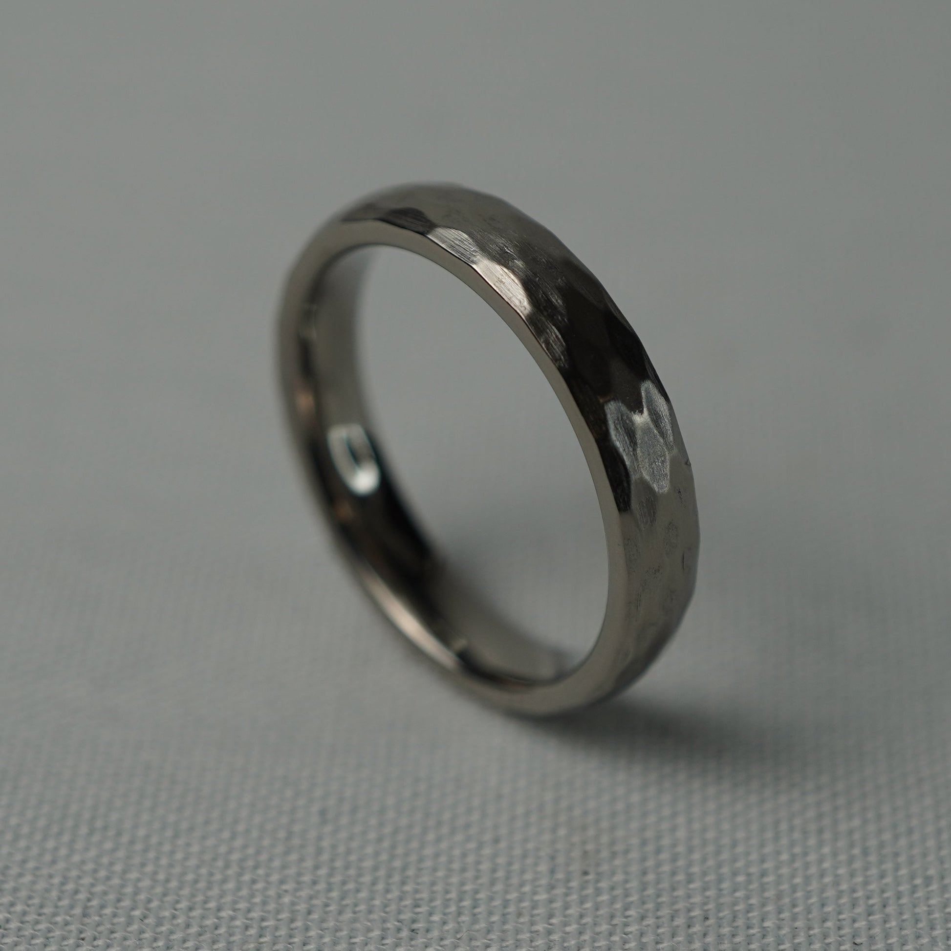 Hammered Titanium Ring with Distinctive Faceted Finish