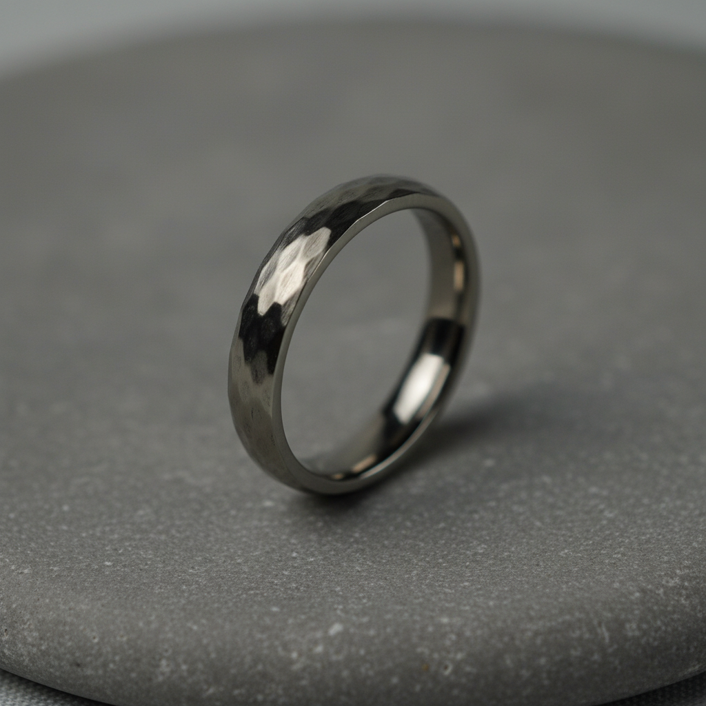 Crafted from aerospace-grade titanium, this 4mm band delivers exceptional durability without the weight of traditional metals. The hammered surface creates a unique geometric pattern that resists scratches and maintains its distinctive appearance through years of daily wear.